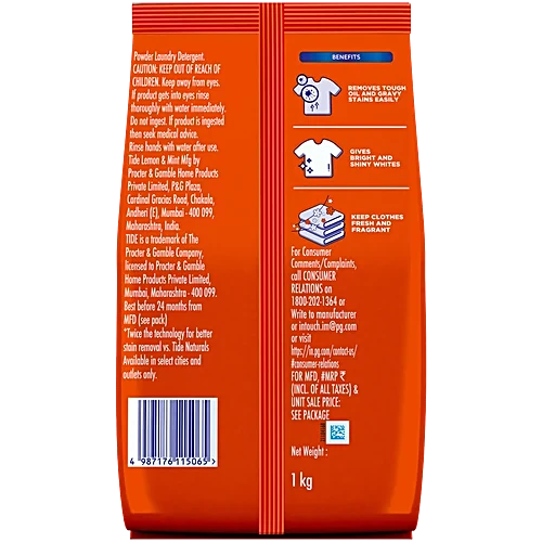 New Tide Plus Double Power detergent powder has Stain Magnets, which can remove the toughest of stains to give you Stainless Whites. Tide Plus’ improved formulation and enzyme system has been specially designed to beat tough kitchen stains and give you outstanding whiteness. We often get food stains while cooking, when kids eat, while spending time with family. Tide surf Plus Double Power has easy dissolution in water and great foaming properties which removes stains easily. It is available in a range of amazing iconic fragrances – Jasmine&Rose and Lemon&Mint. The product works on both white and coloured clothes. Tide’s Double Power refers to the superior formulation vs. Tide Naturals.