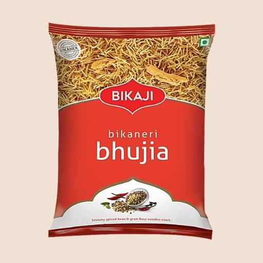 Bikaji Bikaneri Bhujia is a famous, crispy, and savory Indian snack (Namkeen) originating from the city of Bikaner in Rajasthan, India. It consists of thin, crunchy, noodle-like strands made from flour and a special blend of authentic spices.