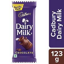 - Packaging: Iconic purple wrapper with the Dairy Milk logo and a small image of a milk jug.