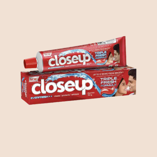Closeup Everfresh Red Hot is a red gel toothpaste with a Triple Fresh Formula that provides up to 12 hours of fresh breath. It helps fight germs, cleans your mouth thoroughly, and whitens teeth for a confident smile. Its spicy Red Hot flavor gives a refreshing and invigorating brushing experience.