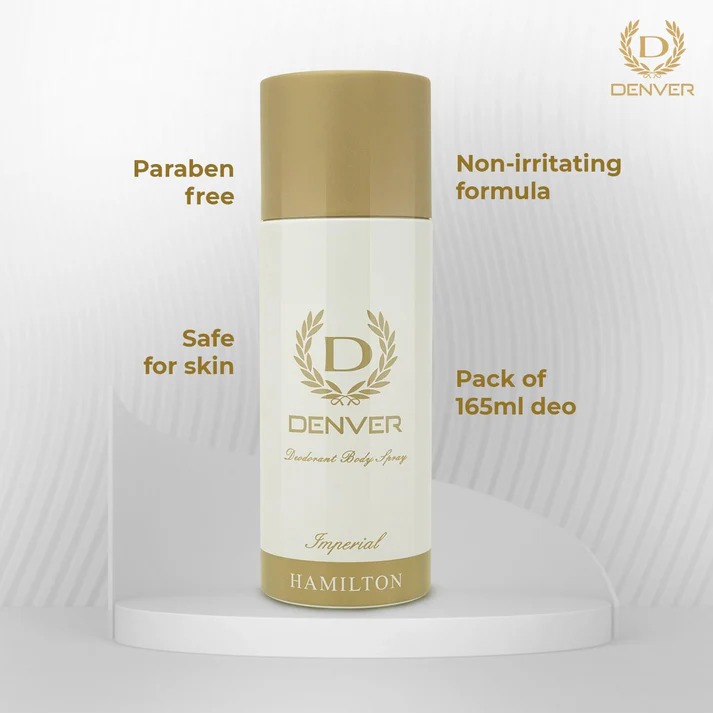 Denver Hamilton Imperial Deodorant Body Spray is a premium men’s deodorant with a sophisticated and long-lasting fragrance. Part of the Hamilton series, it’s designed to provide all-day freshness with a touch of imperial elegance. The white and gold packaging reflects a sense of luxury and classic style.