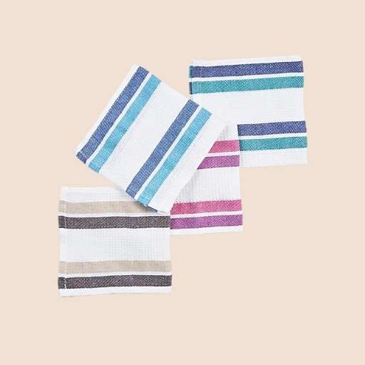 - Assorted Colors/Patterns: The set includes towels with different colored stripes (e.g., blue/aqua, pink/purple, grey/tan) for aesthetic variety or easy task differentiation.