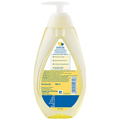 The liquid bath wash features the famous “No More Tears” formula, which is as gentle to the eyes as pure water, ensuring a tear-free and happy bath time. It is pH balanced and paediatrician tested to be mild and safe for your baby’s sensitive skin. The formula is free from harmful chemicals like added parabens, dyes, sulfates, and phthalates, giving you peace of mind with every use. Use it to gently cleanse your baby’s entire body and hair, from top to toe.