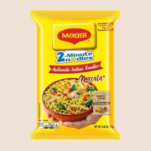 (Maggie) Maggi 2-Minute Noodles Masala is India’s most popular brand of instant noodles. It is a quick and easy-to-prepare meal or snack that features a savory, authentic Indian Masala (spice mix) flavor. It is a convenient comfort food cherished by people of all ages.