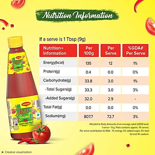 Maggi Hot & Sweet Tomato Chilli Sauce is the perfect condiment to add a tangy and spicy kick to your favorite snacks and dishes. This iconic sauce is a balanced blend of rich tomatoes and fiery red chilies, creating a unique “hot and sweet” flavor profile that is loved across India. Use it to dip your fries, top a burger, or simply as a flavorful addition to your everyday meals.