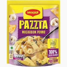 Maggi Pazzta Mushroom Penne is an instant pasta product offering a rich, creamy, and savory white sauce-based flavor experience. It features penne (tube-shaped) pasta pieces and is seasoned with a delectable mushroom flavor, providing a quick, comforting, and wholesome meal or snack that can be prepared rapidly.