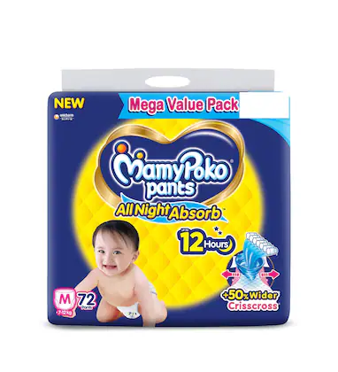Mamy Poko Pants All Night Absorb M72 |Baby Diapers |Medium |72 countMamy Poko Pants All Night Absorb M72 |Baby Diapers |Medium |72 count