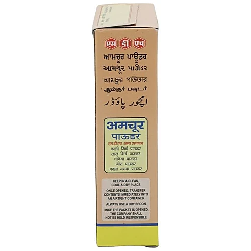 MDH Powder Amchoor, also known as dry mango powder, is a versatile spice that adds a distinct tangy and sour flavor to a wide variety of dishes. Made from dried and ground raw mangoes, it’s a great substitute for lemon or tamarind. Use it to add a zesty twist to your curries, chutneys, marinades, and stir-fries.