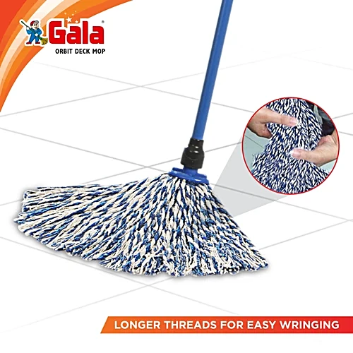 - Material: The mop head consists of thick, absorbent, mixed-color yarn strands (likely cotton blend).