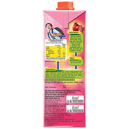 - India’s No. 1 Brand: From the trusted house of Dabur, Réal is the nation’s most loved juice and nectar brand, ensuring quality in every pack.