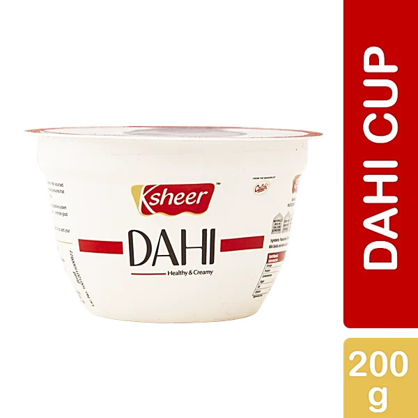 Ksheer Dahi is a healthy and creamy Indian curd or yogurt product. The packaging highlights its health benefits, including being rich in protein and calcium. It is sold in a consumer-friendly cup format, with this specific one being 200g.