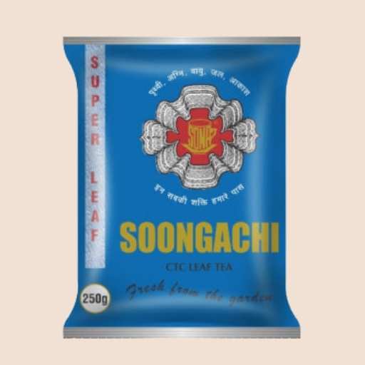 Soongachi Tea is a premium CTC (Crush, Tear, Curl) leaf tea, crafted to deliver strong flavor, refreshing aroma, and a rich, satisfying taste. Packaged in a vibrant blue pouch with the brand’s emblem, it promises authentic tea garden freshness in every sip.