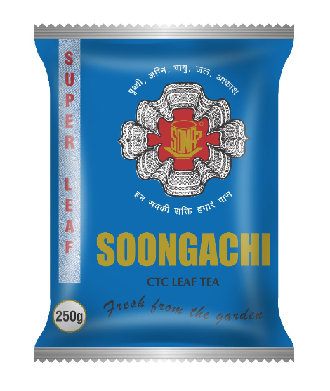 Soongachi Tea is a premium CTC (Crush, Tear, Curl) leaf tea, crafted to deliver strong flavor, refreshing aroma, and a rich, satisfying taste. Packaged in a vibrant blue pouch with the brand’s emblem, it promises authentic tea garden freshness in every sip.