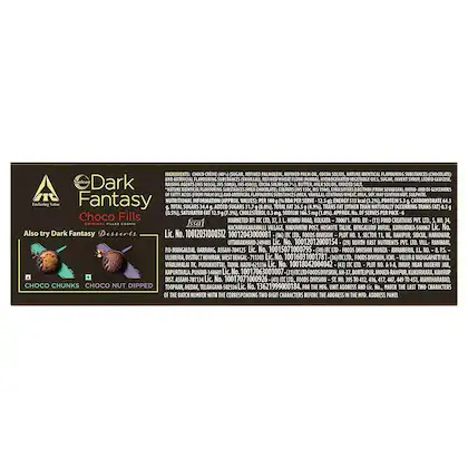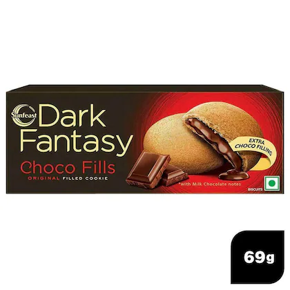 Sunfeast Dark Fantasy Choco Fills is an original filled cookie designed for chocolate lovers. It features a rich, dark, crunchy cookie shell that encases an “Extra Choco Filling” that oozes out upon biting.