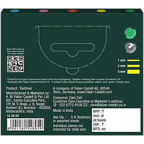 - Tip: Classic chisel tip for highlighting in three line widths (typically 1mm, 2mm, and 5mm).